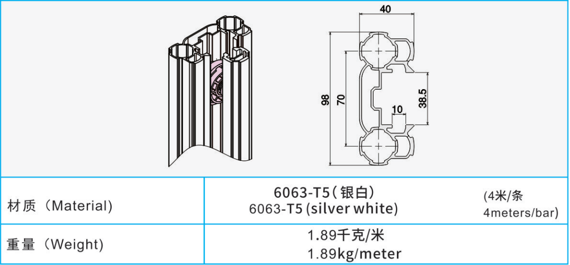線棒材質:6063-T5(銀白)(4米/條)