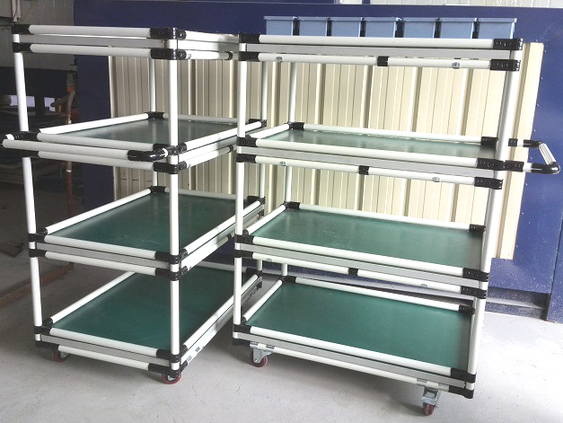 精益管周轉車的臺面板是直接接觸周轉物料的部分,所以在安裝時要注意安裝牢固,以免用的時間長了松動。安裝好臺面板后再重新檢查一遍,如無任何問題即可投入生產使用。